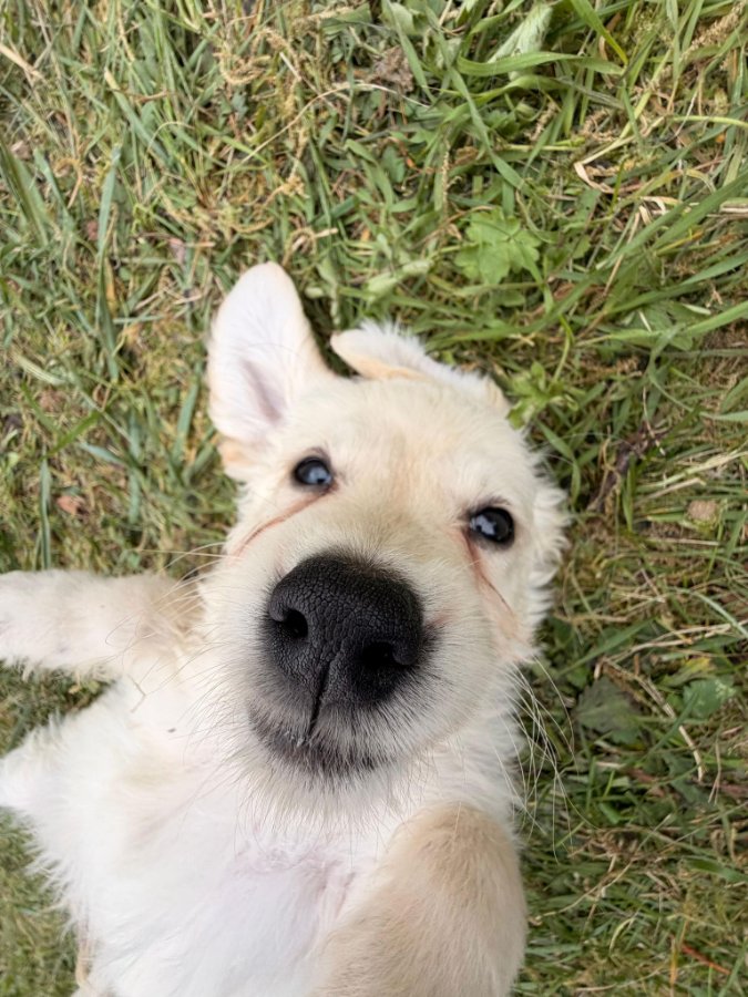 Hugo - ein 9 Wochen junger Goldendoodle-Welpe. Er gehört Lena und Fabi und er ist einfach Zucker 😍